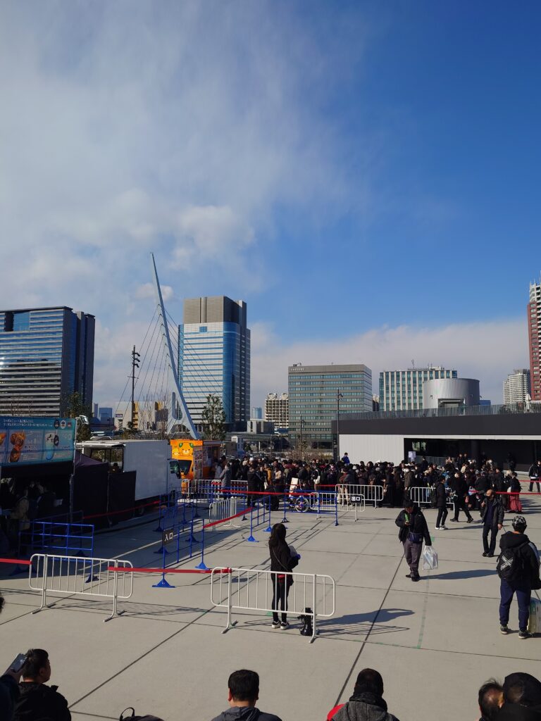 ゆりかもめは本数が多いので、待っていてもすぐ乗れたかも知れないけど、新橋方面へ帰る方で行列を回避したいならお台場海浜公園駅まで歩くのもありかな。